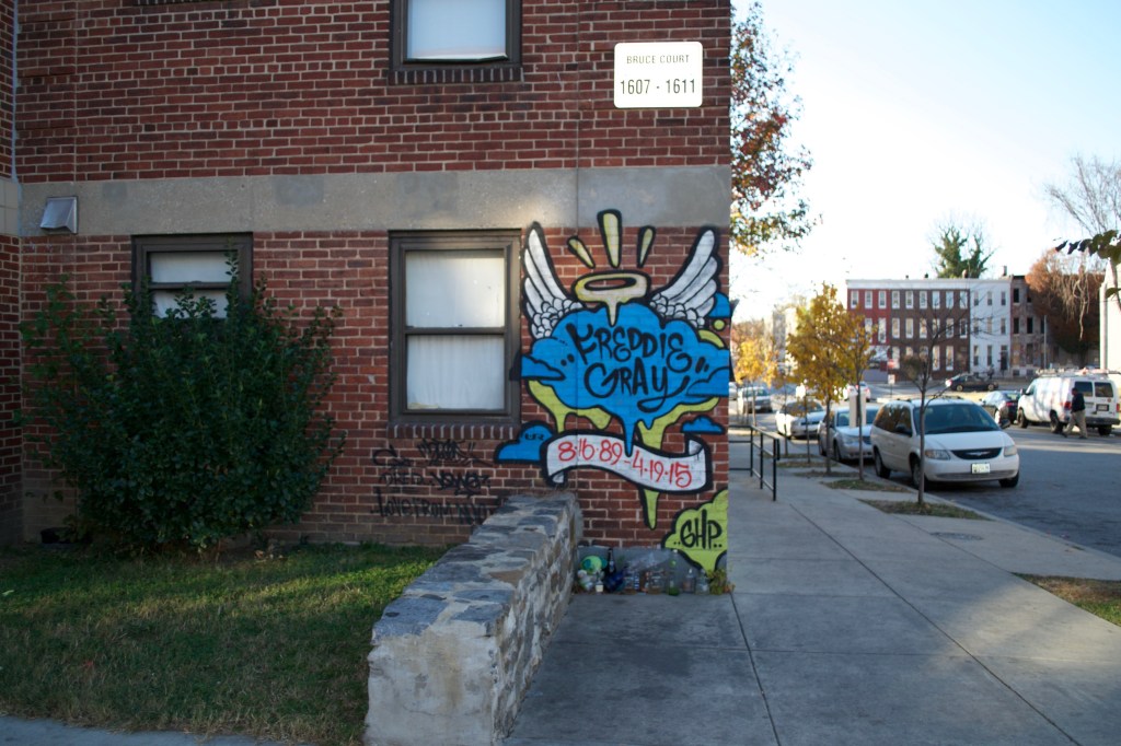 Freddie Gray memorial at the site of his arrest in the Sandtown-Winchester neighborhood, Baltimore